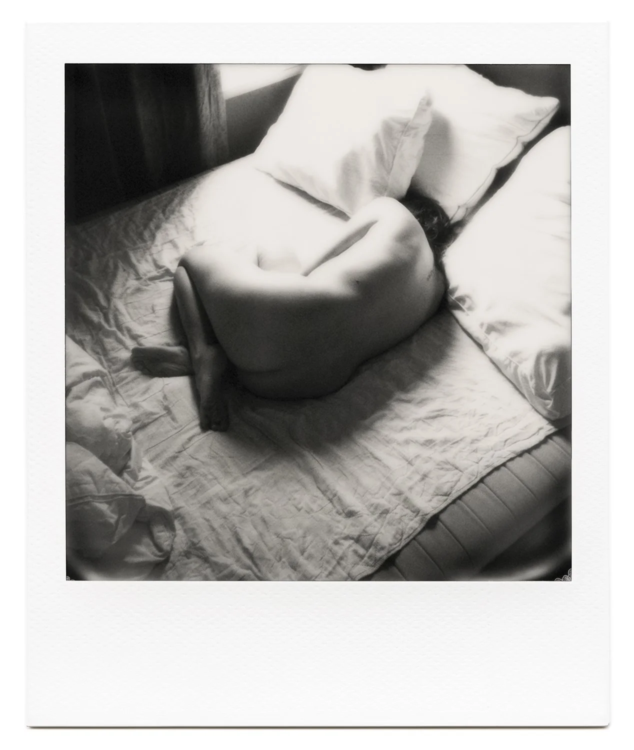 My home and immediate surroundings became the canvas for the series. Through self-portraits and still lifes, I intuitively documented my daily life, emotions, and state of mind. Each image is unique, not reproducible: a frozen moment from my life, captured in a single Polaroid.